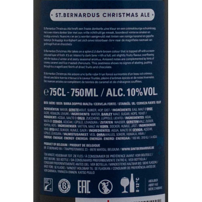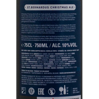 La Christmas Ale è la birra natalizia del birrificio del birrificio St.Bernardus di Watou. Viene prodotta con lo stesso lievito della Abt.12 con la quale ha diversi punti in comune. Bel color bruno, con intriganti sfumature rossastre, nel bicchiere è sormontata da una schiuma compatta e cremosa, molto persistente. Sprigiona sentori etilici, di melassa, frutta gialla (albicocca), liquirizia, marzapane e una delicata speziatura che sconfina nella menta. In bocca ha un bel corpo, una piacevole dolcezza e dona una sensazione di warming che si sposa perfettamente all'atmosfera natalizia.