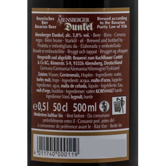Kuchlbauer Abensberger Dunkel è una dark lager / dunkel bavarese da 5,0% vol. e 12,2% Plato, una specialità old style della Brauerei zum Kuchlbauer prodotta secondo antiche ricette con malti scuri appositamente tostati e nel rispetto del Reinheitsgebot: nel bicchiere richiama le classiche tonalità bruno-castano delle dunkel tradizionali, mentre al naso e al sorso spiccano malto tostato, crosta di pane, caramello, leggere note di caffè e una speziatura rustica, con una bevuta corposa ma equilibrata, morbida e maltata, chiusa da un finale pulito e moderatamente amaro che la rende molto appagante per gli amanti delle birre scure bavaresi.