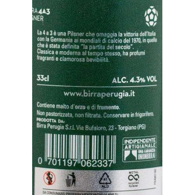 La 4 a 3 è una Pilsner che omaggia la vittoria dell’Italia con la Germania ai mondiali di calcio del 1970, in quella che è stata definita “la partita del secolo”. Classica e moderna al tempo stesso, ha profumi fragranti e clamorosa bevibilità.
