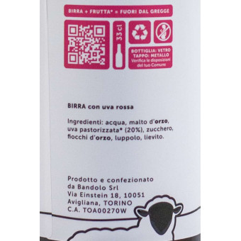 Il “succo” d’uva resta a contatto con i lieviti per circa tre settimane, trasferendo nel prodotto un brillante colore rosato, oltre a profumi ed aromi. I malti sono Pilsner e frumento. Il pH basso permette una conservazione ottimale della birra per lungo tempo.