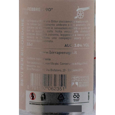 La Febbre a 90° è una Bitter decisamente tradizionale. Ha colore delicatamente ambrato e toni aromatici che giocano ad alternare le sensazioni maltate a quelle dei fiori di luppolo, dalla frutta secca alle sfumature erbacee.