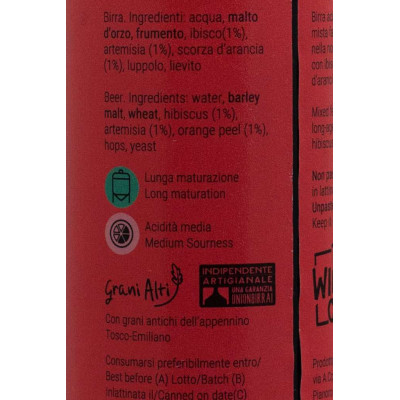Birra acida a fermentazione mista fatta maturare lentamente nella nostra cantina. Speziata con ibisco, artemisia e scorza d’arancia.