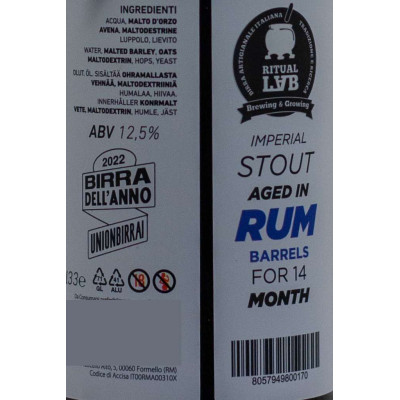 Nero impenetrabile, con schiuma nocciola fine e veloce, apre su profumi intensi di rum agricolo, melassa e frutta scura (uvetta, dattero), fusi a vaniglia e legno di rovere. L’affinamento in botte (14 mesi, botti di Rum Clément) amplifica toni di cacao amaro ed espresso, con richiami di zucchero di canna, toffee e un accenno speziato/caramellato da botte. In bocca è piena e avvolgente: trama setosa, carbonazione contenuta, cremosa e liquorosa ma mai stucchevole. L’alcol scalda senza bruciare, mentre il finale è lunghissimo con note di uvetta al rum, cioccolato fondente e una lieve vena torrefatta/liquiriziosa che asciuga e invita al sorso successivo. Una “da meditazione” che mette in primo piano la maturazione in legno e la stratificazione maltata.