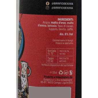 Di colore nero con riflessi bruni, questa Porter è stata prodotta con i migliori malti inglesi. L’aggiunta di lattosio a fine bollitura rende il corpo morbido, mentre le fave di cacao della Repubblica Dominicana e i chicchi di caffè brasiliani sono stati aggiunti in fermentatore.