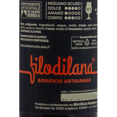 Filodilana Quattro Pere è una Belgian Quadrupel da 10% vol che unisce l’opulenza dei malti scuri alla firma fruttata delle Pere Martin Sec: nel bicchiere si presenta mogano scuro con riflessi rubino e schiuma beige cremosa, mentre al naso esplode in note di frutta sotto spirito, prugna, frutti rossi, frutta secca, caramello, liquirizia e sfumature “biscottate”. La ricetta spinge su Special B e zucchero candito scuro, con lievito belga a completare il profilo, e prevede un’importante aggiunta di pere sminuzzate e cotte a metà fermentazione (circa 80 g per 33 cl, ~240 g/L): il risultato è una quad dolce e caramellata ma non stucchevole, con carbonazione vivace, calore alcolico elegante e una chiusura sorprendentemente secca con un tocco appena sour dato dalla frutta.