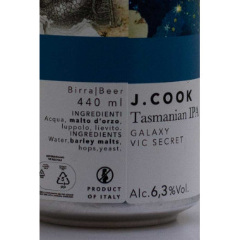 J.Cook di Shire Brewing è una Tasmanian IPA di ispirazione American IPA in lattina da 44 cl, proposta nella scheda ufficiale a 6,8% vol., costruita su una base essenziale di malto Pale Ale Golden Promise e destrosio e fermentata con un lievito neutro per lasciare totale centralità ai luppoli Galaxy e Vic Secret. Il risultato è una birra dal profilo aromatico intenso e pulito, con richiami di frutta tropicale, passion fruit, pesca, pompelmo, agrumi, resina e lievi sfumature che ricordano melone e spezie, sostenuti da una carbonazione leggermente vivace che rende la bevuta fresca, scorrevole e molto profumata, con finale piacevolmente amaro e di ottima persistenza. In chiave sensoriale si immagina nel bicchiere come una IPA dal carattere luminoso e slanciato, con corpo snello e impronta luppolata protagonista, perfetta per chi cerca una birra artigianale intensa ma equilibrata.