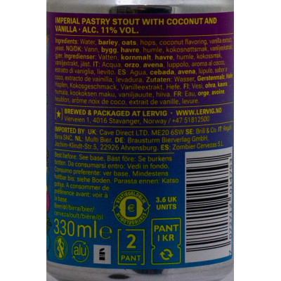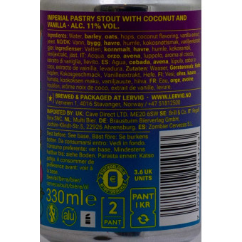 Nel bicchiere si presenta nera e impenetrabile, con una schiuma compatta color beige che anticipa una bevuta ricca e cremosa. Al naso apre con note nitide di cocco e vaniglia, subito accompagnate da cioccolato, cacao, malto scuro e leggere sfumature di caffè e zucchero brunito. In bocca l’ingresso è pieno, morbido e avvolgente, con una tessitura setosa che richiama chiaramente il mondo del dessert. La dolcezza è marcata ma ben integrata nella struttura, mentre la componente tostata resta di supporto senza irrigidire il sorso. Il corpo è importante, la carbonazione contenuta e l’equilibrio punta più sulla rotondità che sull’amaro. La chiusura è lunga, golosa e persistente, con ritorni di cocco, vaniglia e cioccolato fondente. Nel complesso è una pastry stout intensa e appagante, costruita per una degustazione lenta e orientata alla morbidezza aromatica.